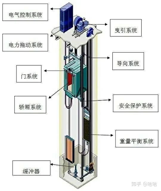 七、電氣控制系統(tǒng):電梯的電氣控制系統(tǒng)由控制裝置,操縱裝置,平層裝置,和位置顯示裝置等部分組成。其中控制裝置根據(jù)電梯的運行邏輯功能要求,控制電梯的運行,設(shè)置在機房中的控制柜上。操縱裝置是由轎廂內(nèi)的按鈕箱和廳門的召喚箱按鈕來操縱電梯的運行的。平層裝置是發(fā)出平層控制信號,使電梯轎廂準(zhǔn)確平層的控制裝置。所謂平層,是指轎廂在接近某一樓層的??空緯r,欲使轎廂地坎與廳門地坎達到同一平面的操作。位置顯示裝置是用來顯示電梯所在樓層位置的轎內(nèi)和廳門的指示燈,廳門指示燈還用尖頭指示電梯的運行方向。