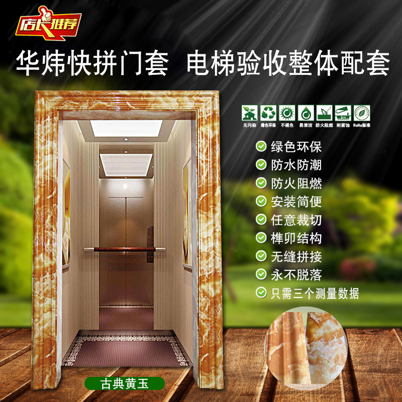 電梯環(huán)?!翱煅b”門(mén)套,是繼電梯無(wú)線(xiàn)五方對(duì)講系統(tǒng)后的又一創(chuàng)新性的電梯配套產(chǎn)品,電梯快裝門(mén)套綠色環(huán)保、防水防潮、防火阻燃、榫卯結(jié)構(gòu)、任意切割、無(wú)縫快拼、絕不脫落。